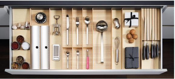 —КОМПЛЕКТ лоток + держатель для ножей, ФайнЛайн Линик 500-600 мм, глубина 500 мм, цвет ЯСЕНЬ светлый Kessebohmer