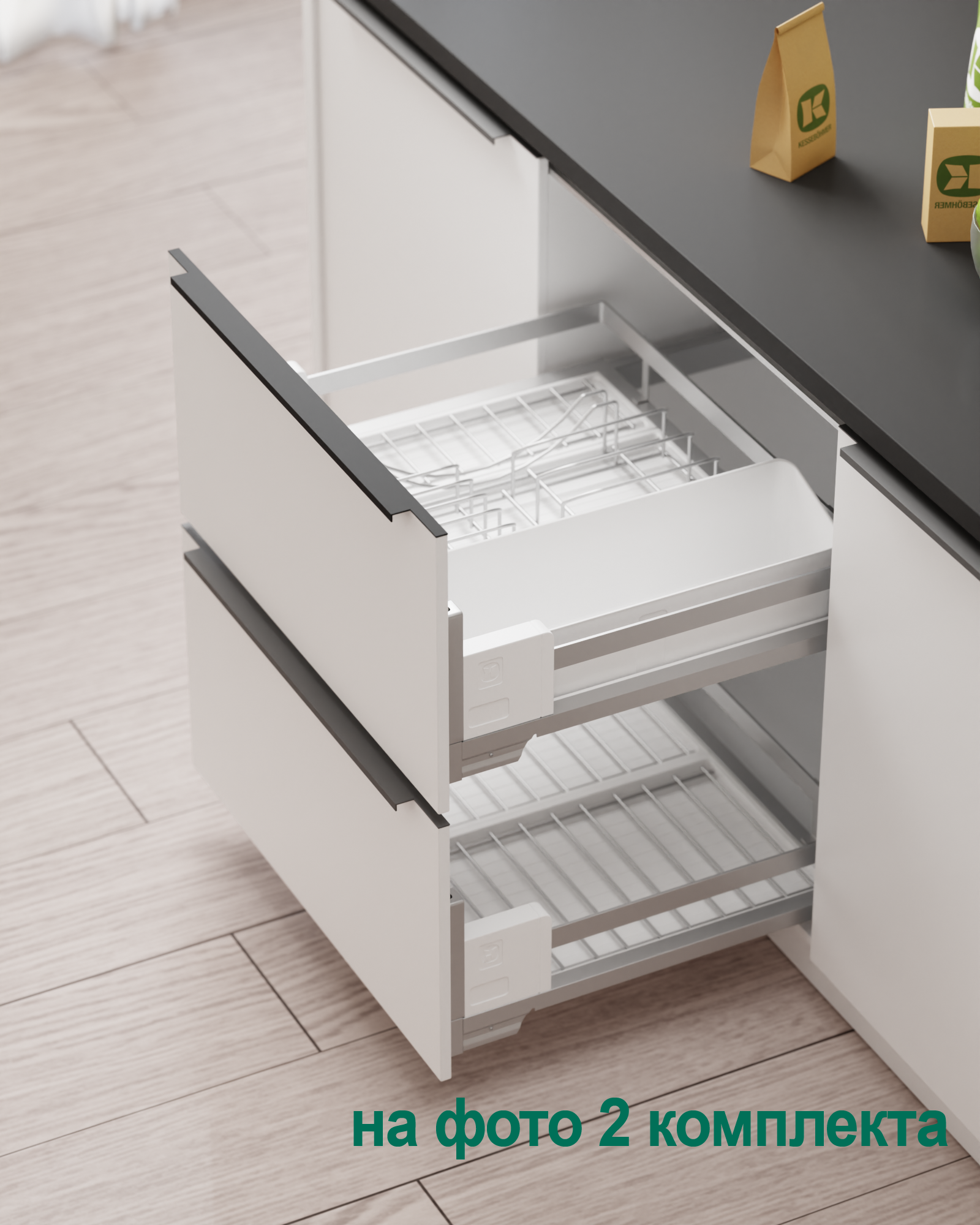 1 для посуды большой (423 x 248 мм, стоит из 1 х держатель металлический, 1 х поддон пластиковый, 2 х защелка-ограничитель)