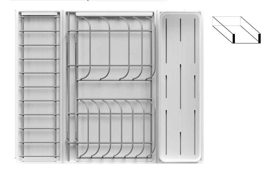 1 модуль для посуды большой (423 x 248 мм, состоит из 1 х держатель металлический, 1 х поддон пластиковый, 2 х защелка-ограничитель)