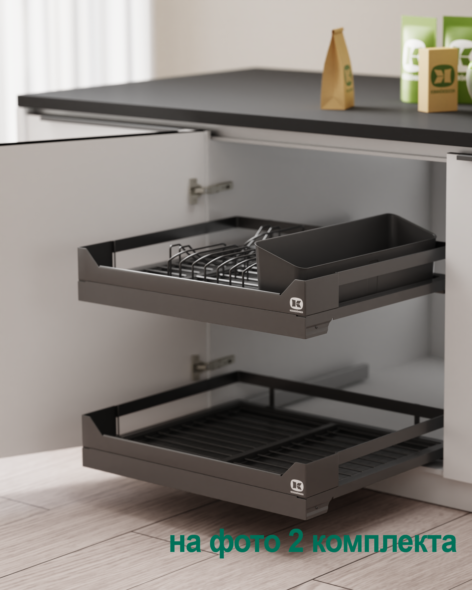 1 для посуды большой (423 x 248 мм, стоит из 1 х держатель металлический, 1 х поддон пластиковый, 2 х защелка-ограничитель)