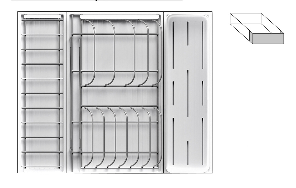 1 модуль для посуды большой (423 x 248 мм, состоит из 1 х держатель металлический, 1 х поддон пластиковый, 2 х защелка-ограничитель)