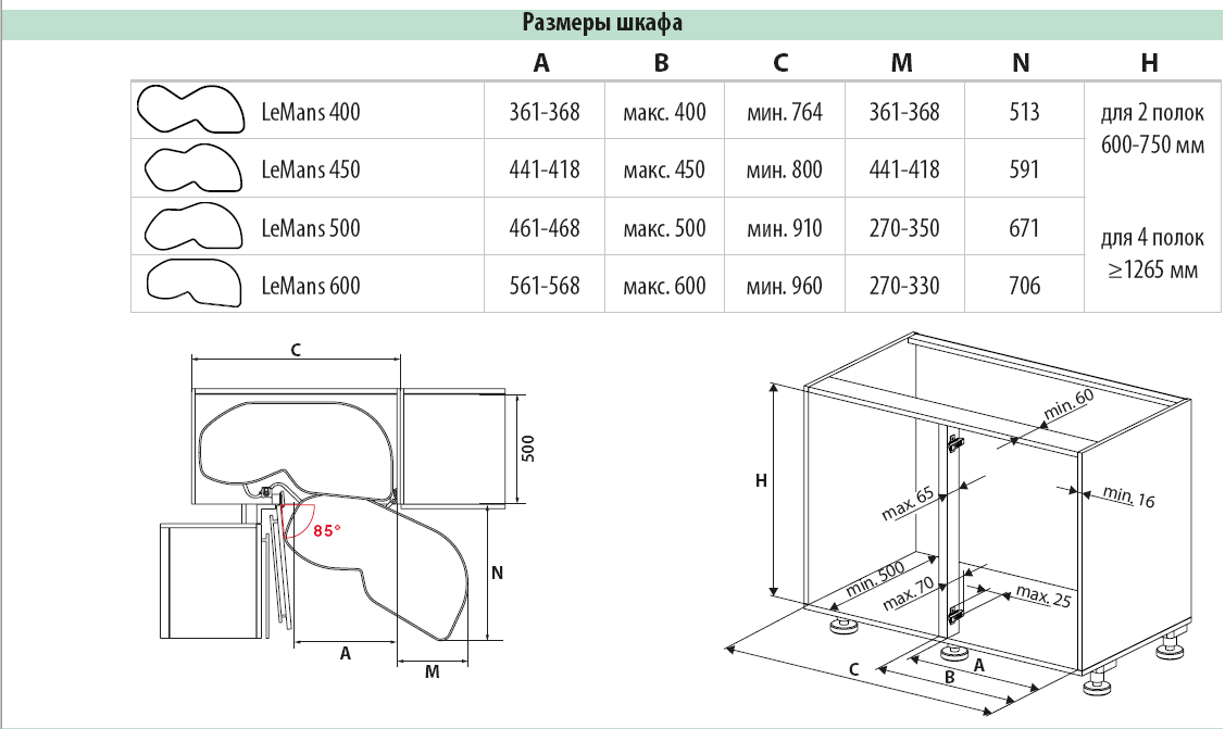 Механизмы для угловых кухонных тумб