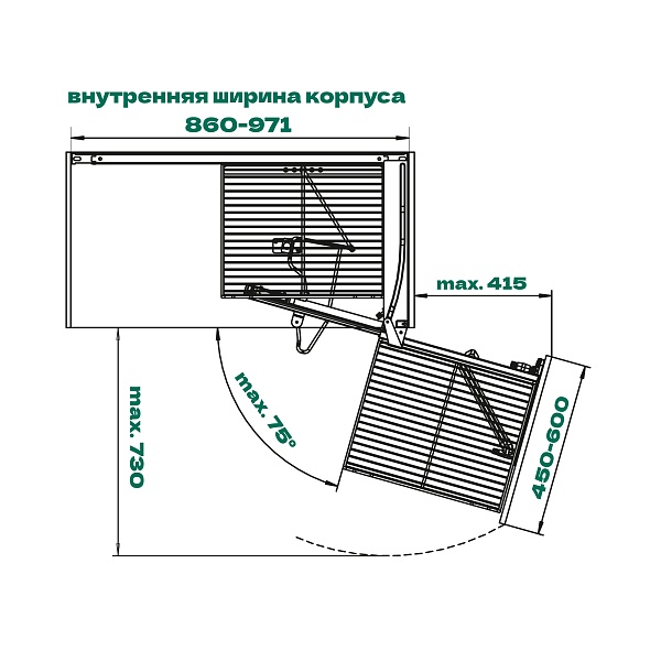 Комплект установочный правый, Волшебный угол 450-600 мм, H 525, Рама + амортизатор, цвет АНТРАЦИТ (2604019846)