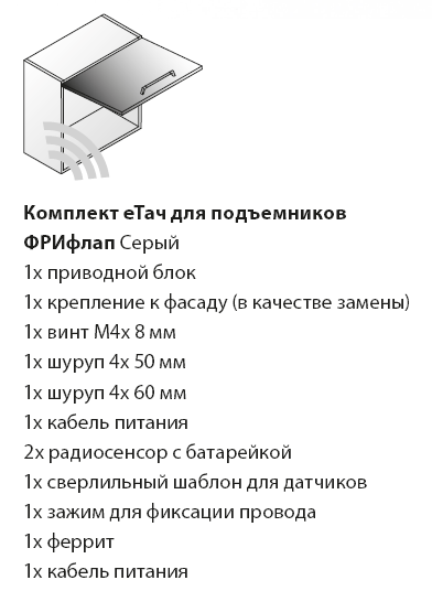 FREEflap eTouch Электропривод с кабелем, еТач, для подъемников ФриФлап, цвет СЕРЫЙ