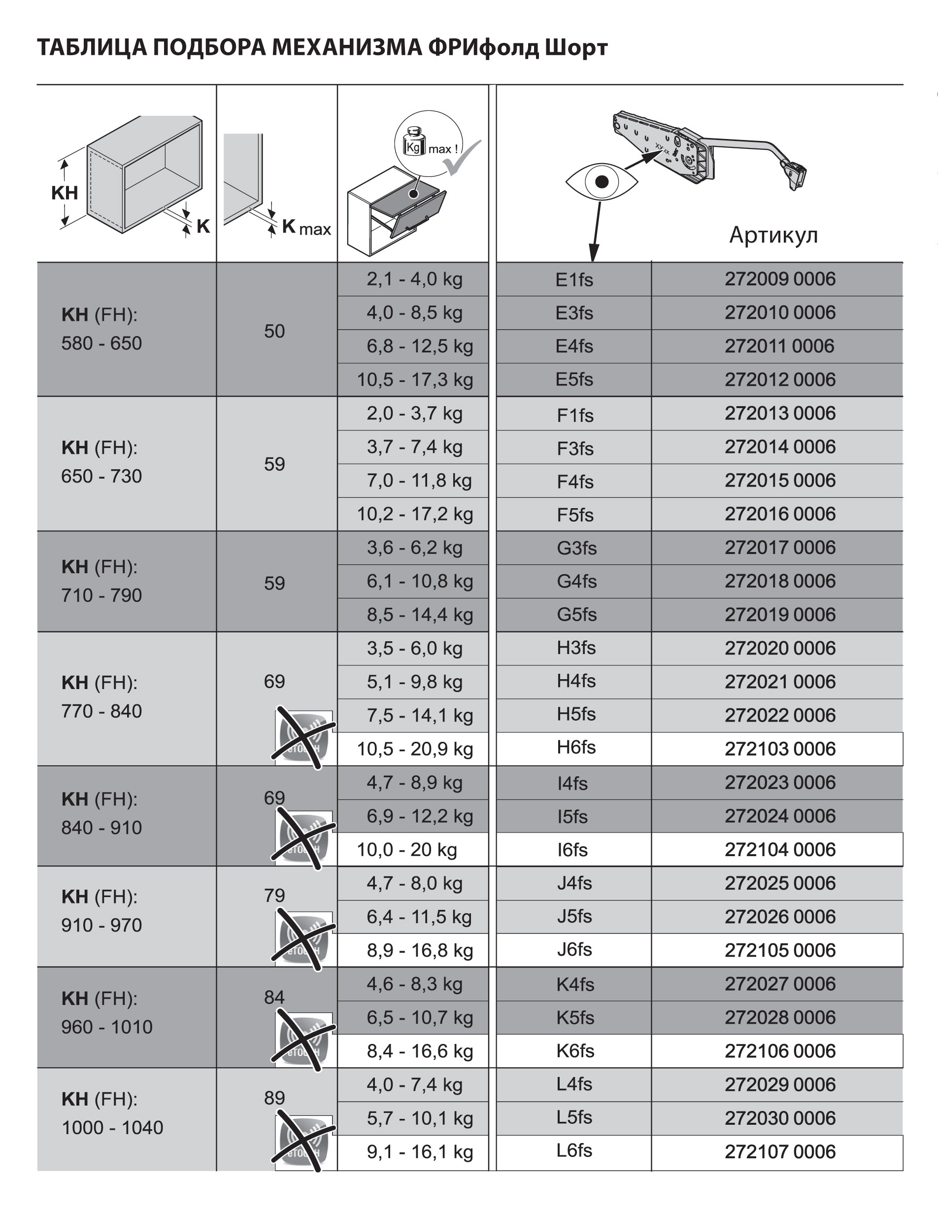 Подъемник ФриФолд Шорт L6fs H 1000-1040 мм 9,1-16,1 кг без крышек, без петель