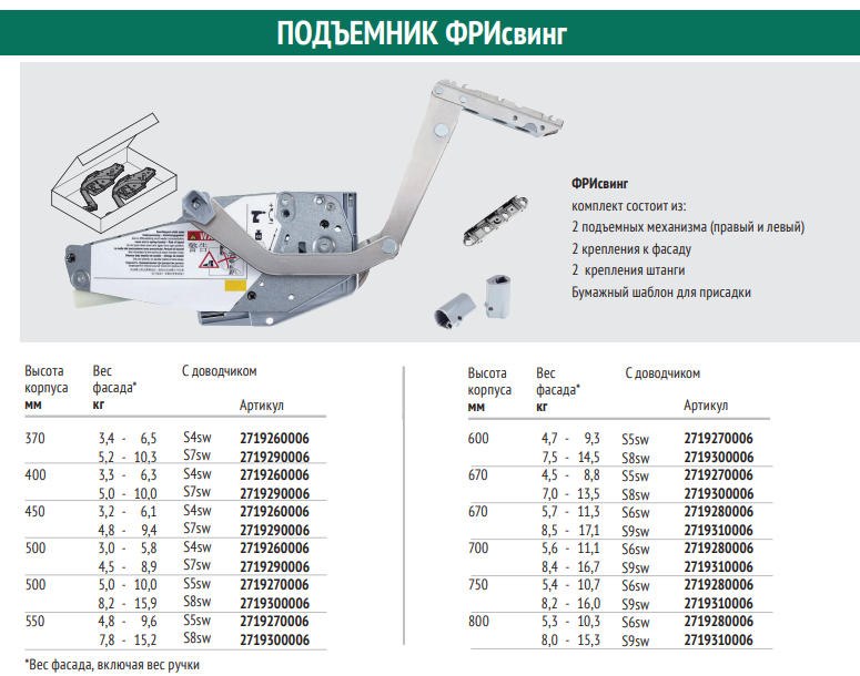 Подъемный механизм FREE SWING