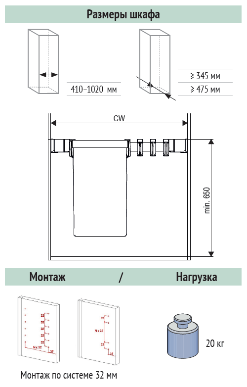 Инструкция по установке Комплект Держатель выдвижной D 345 мм Конеро: с вешалками / с мешком для белья 5,8 мб
