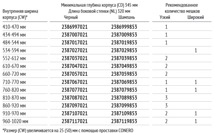 Комплект Conero: Мешок для белья 320 мм, Конеро W 610-670 мм, D 345 мм; мешок узкий 2 шт; цвет ШАМПАНЬ (5397049853)