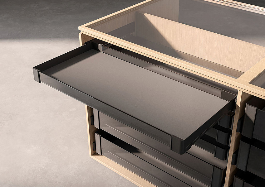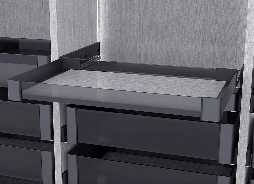 КОМПЛЕКТ Полка внутренняя выдвижная со стеклом 320 мм Конеро H 72 W 960-1020 мм, черный Kessebohmer | официальный магазин