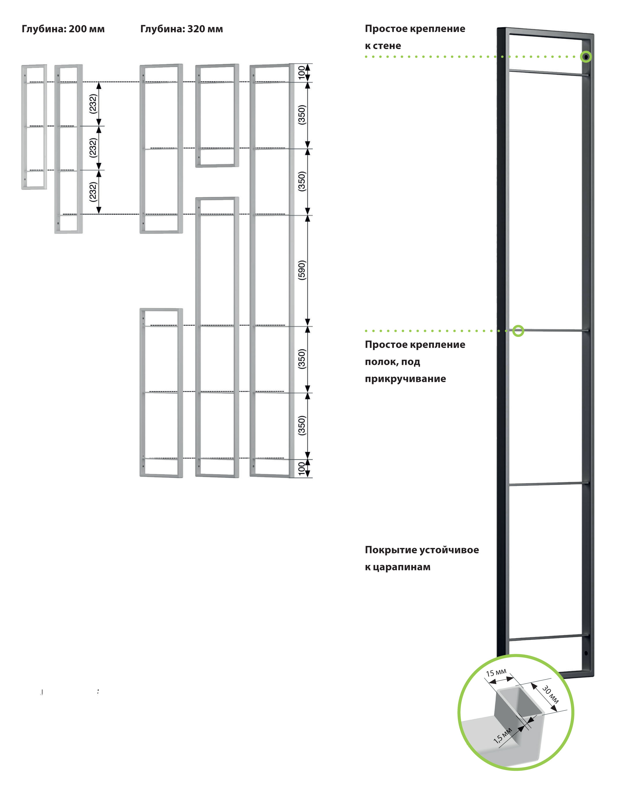 —Рама из стального профиля для стеллажных систем 30x320x1500 мм, Юкей, цвет ЧЕРНЫЙ Kessebohmer