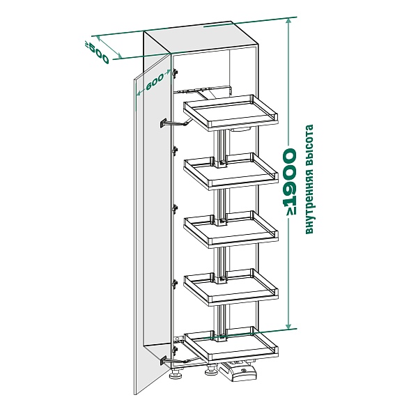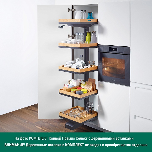 Комплект полок 5шт + 1 ручка, левый, Конвой Премио, 600 мм, Арена СЕЛЕКТ, цвет АНТРАЦИТ, цвет дна Антрацит, антислип (2806239846)