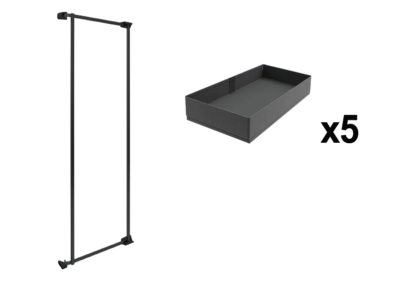 Комплект Тандем Сайд 500 мм, H 1700, Арена ПЬЮР, Рама + 5 полок, цвет АНТРАЦИТ, цвет дна Антрацит, антислип