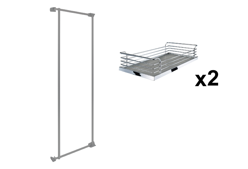 Комплект Тандем Сайд 500 мм, H 600, Арена КЛАССИК, Рама + 2 полки, цвет ХРОМ, цвет дна Серый, антислип