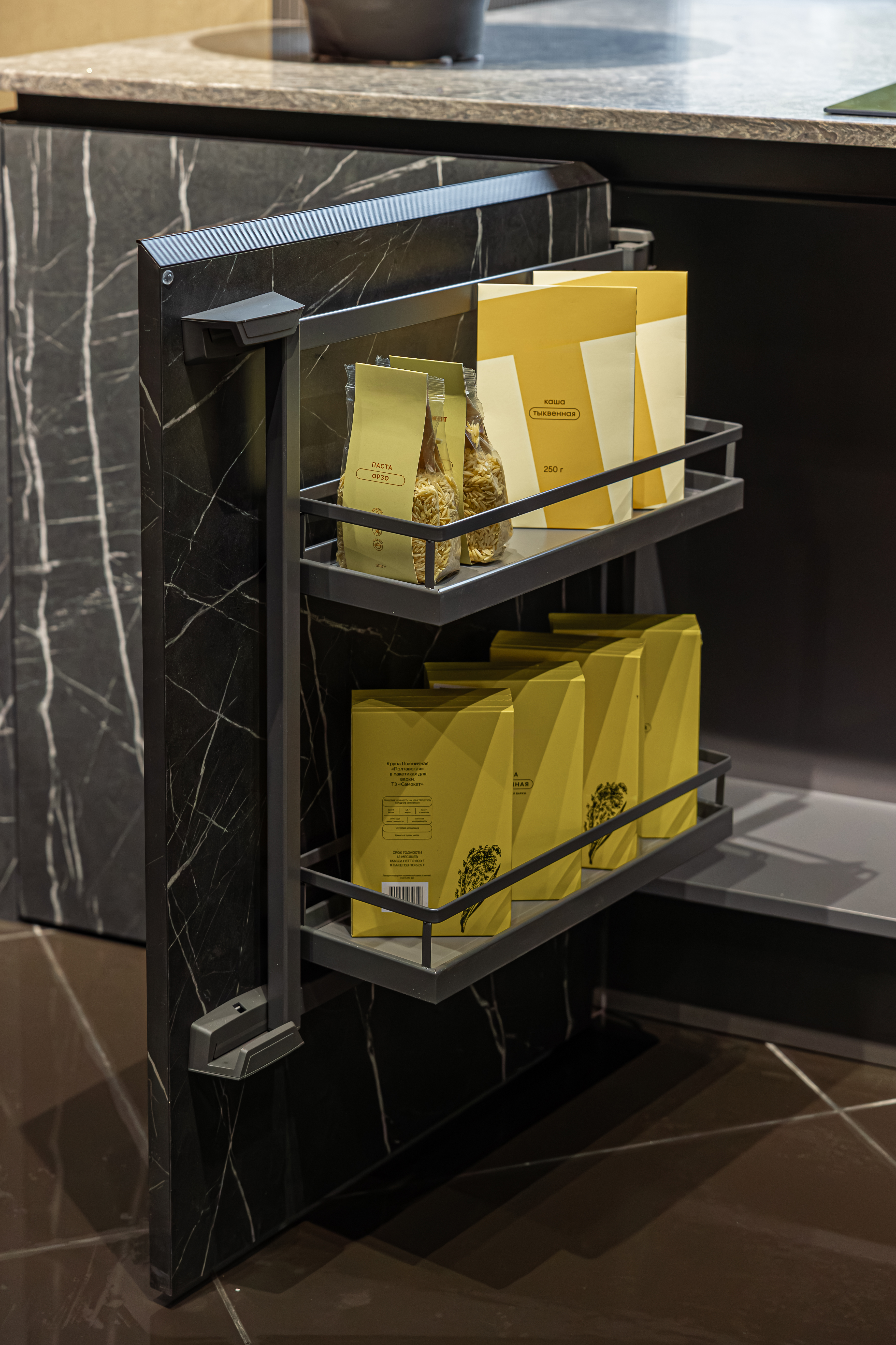 Прямые линии кухонного дизайна с полками Арена СТИЛЬ Kessebohmer в Томске
