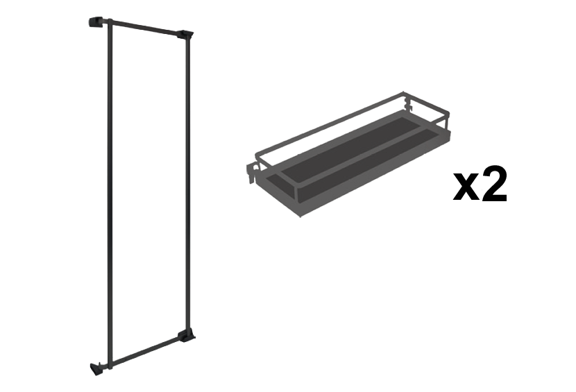 Комплект Тандем Сайд 500 мм, H 600, Арена СТИЛЬ, Рама + 2 полки, цвет АНТРАЦИТ, цвет дна Антрацит, антислип
