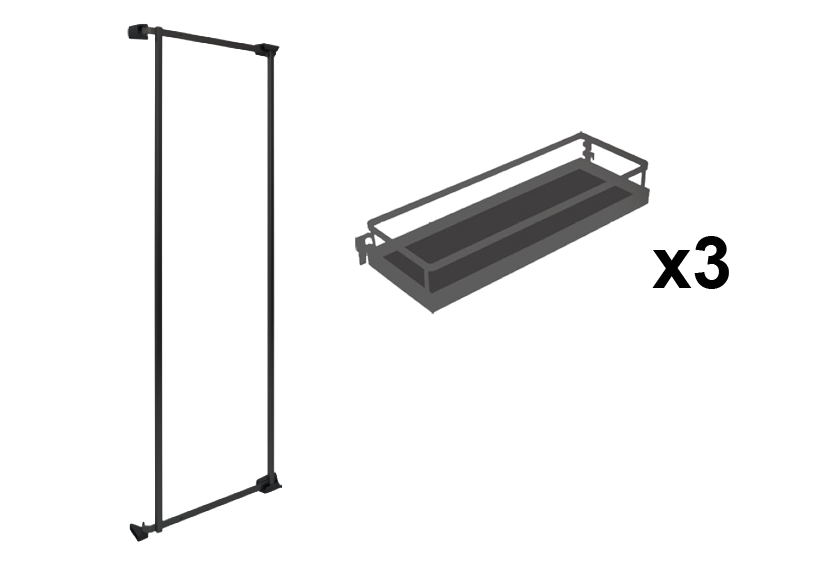 Комплект Тандем Сайд 600 мм, H 800, Арена СТИЛЬ, Рама + 3 полки, цвет АНТРАЦИТ, цвет дна Антрацит, антислип