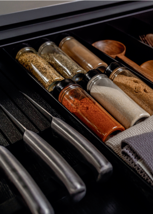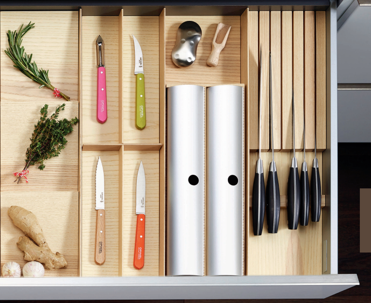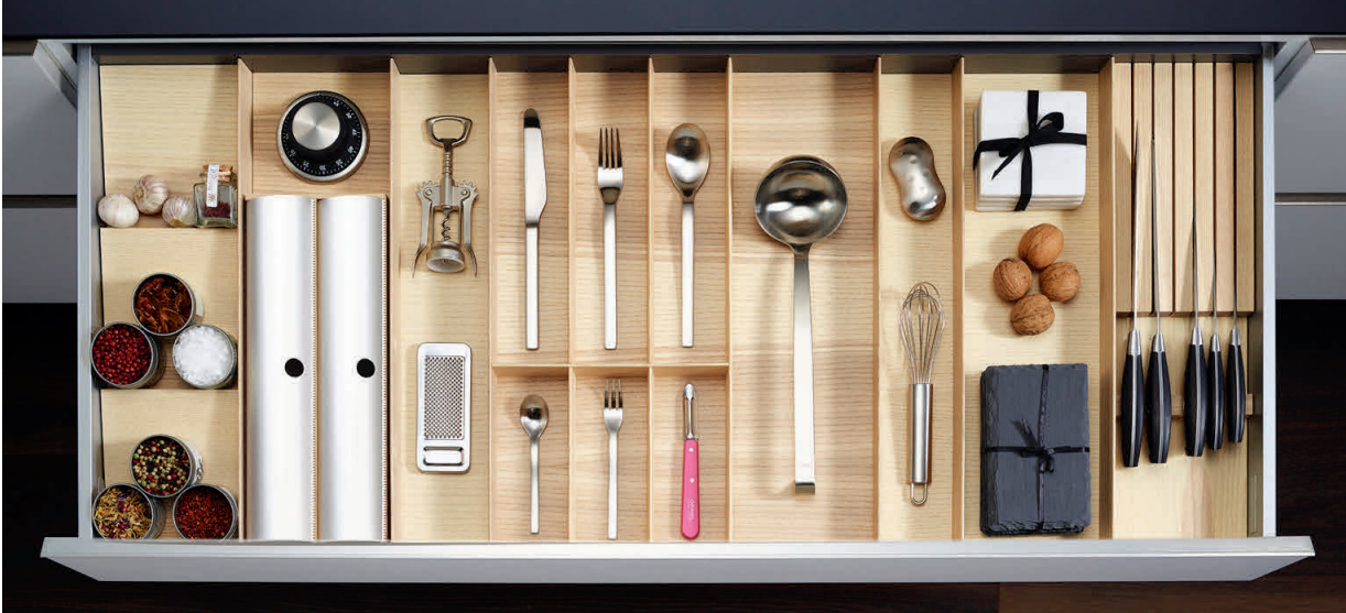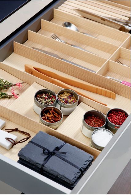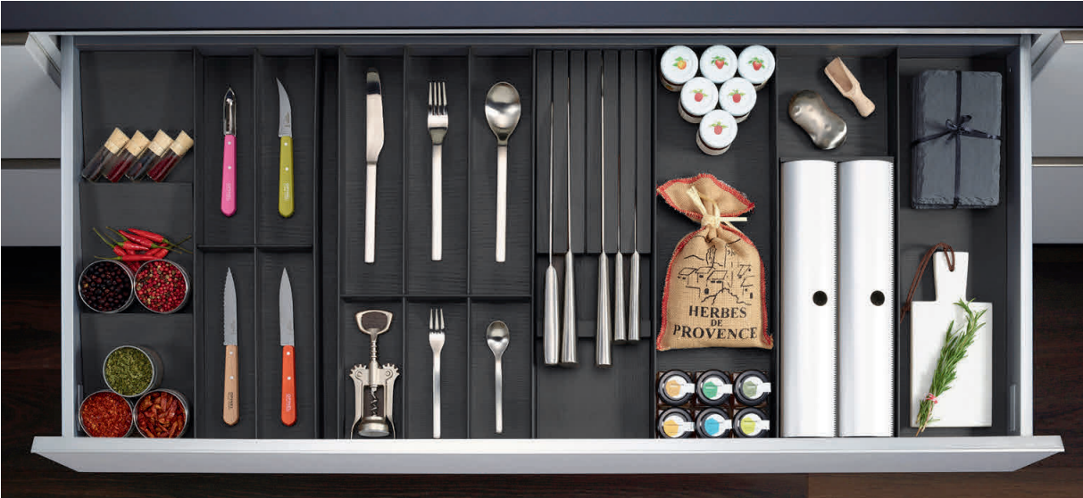 25 элементов FineLine LiniQ позволяют идеально организовывать пространство в любом выдвижном ящике, как с прямыми, так и скошенными боковинами.