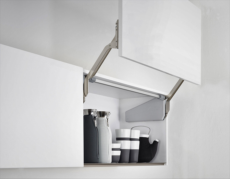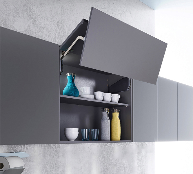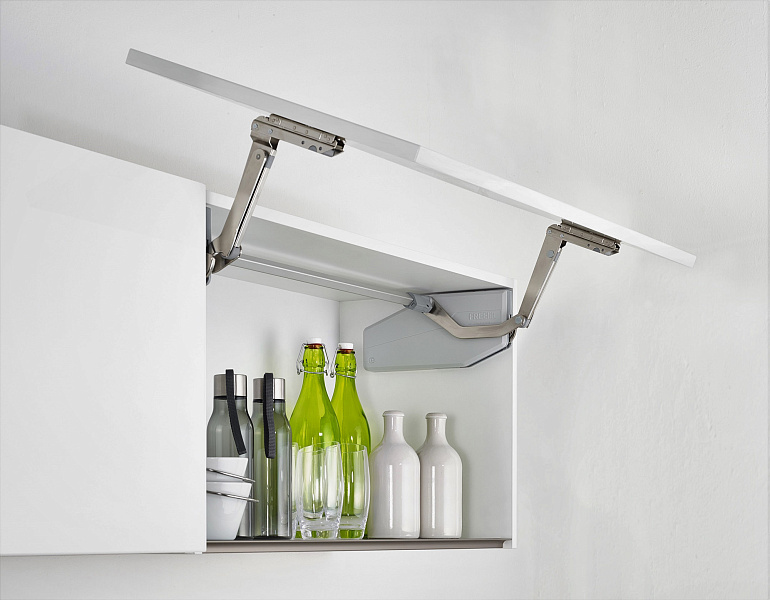 Вам надо знать только материал фасада, его ширину и высоту и выбрать тип подъемного механизма. Наш конфигуратор сам посчитает вес вашего фасада и подберет подходящий вариант подъёмника.